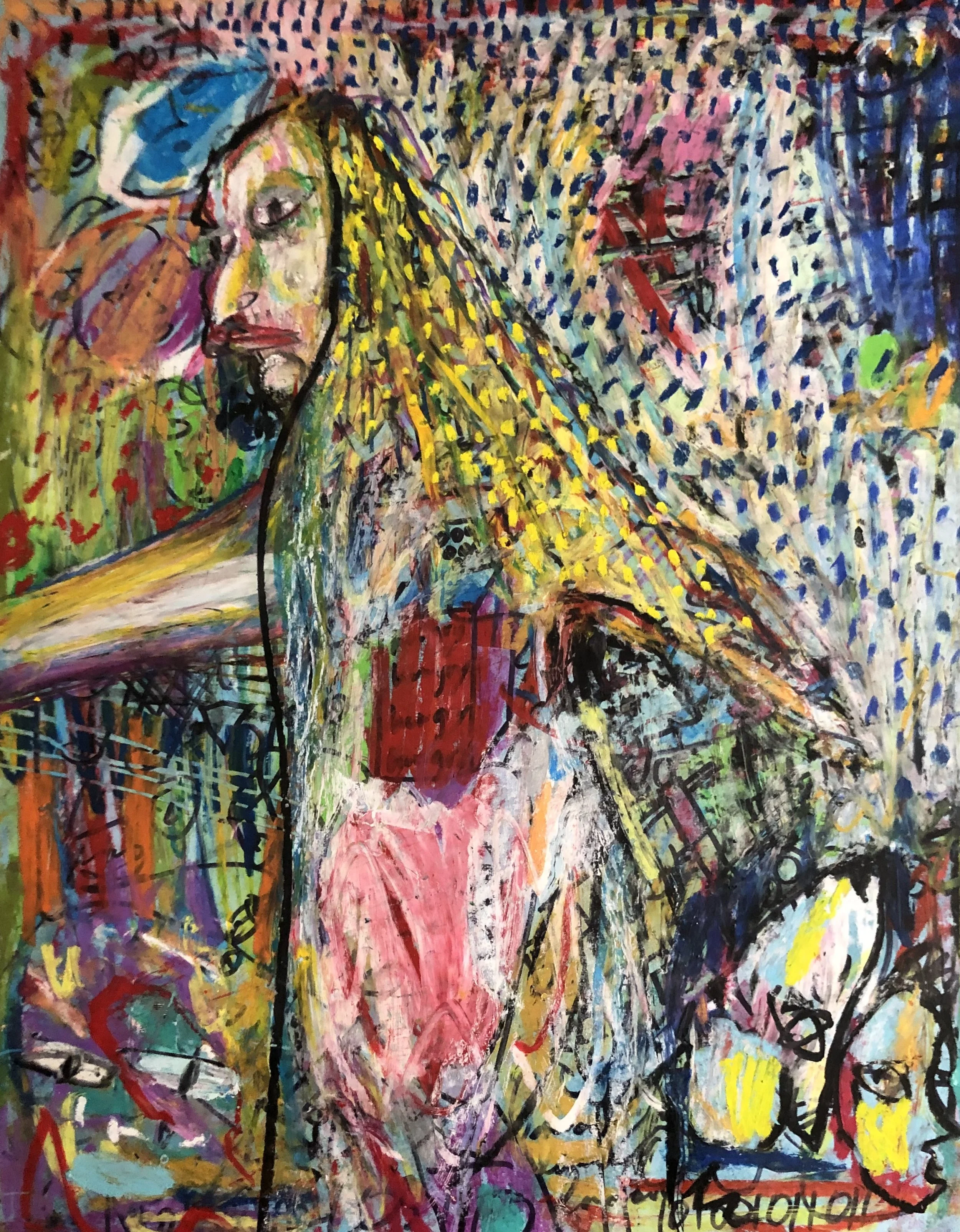 Turning into bird, 2024. Oil pastels and acrylic - 22 x 28 inches