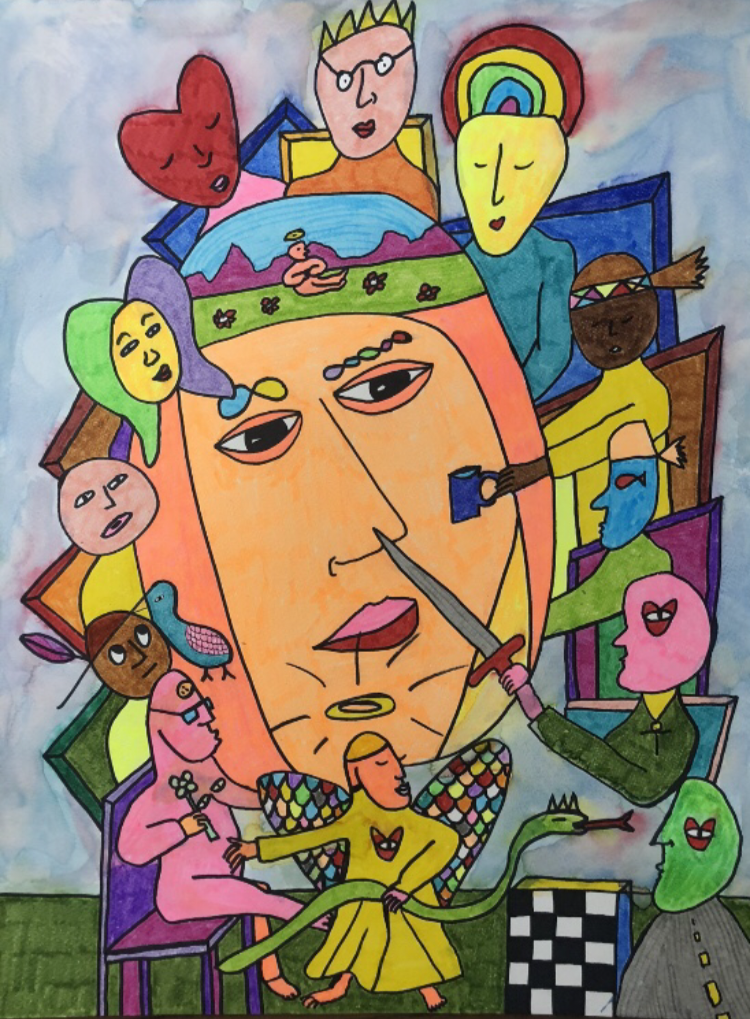 The meeting, 2023. Water color and marker - 18 x 24 inches